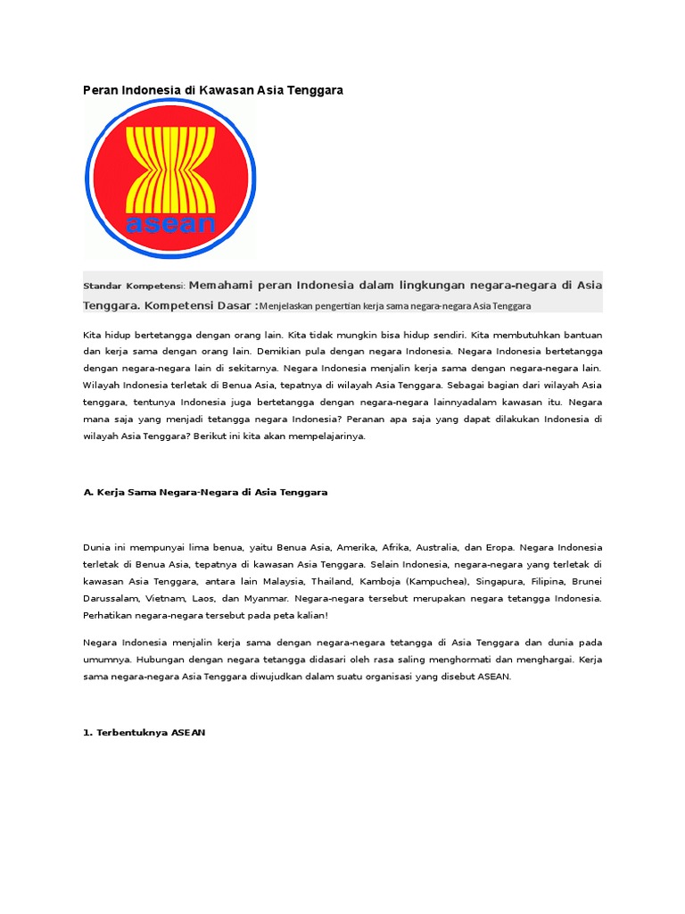 Peran Indonesia Di Kawasan Asia Tenggara