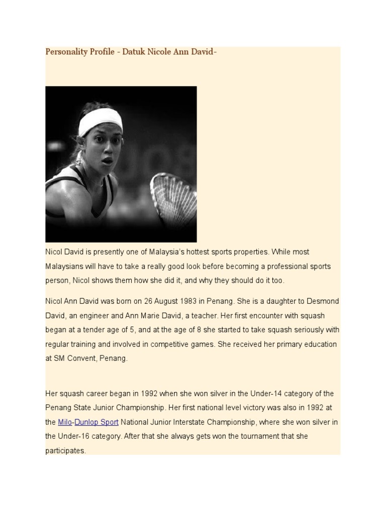 Biodata Lee Chong Wei Dan Nicol Ann David