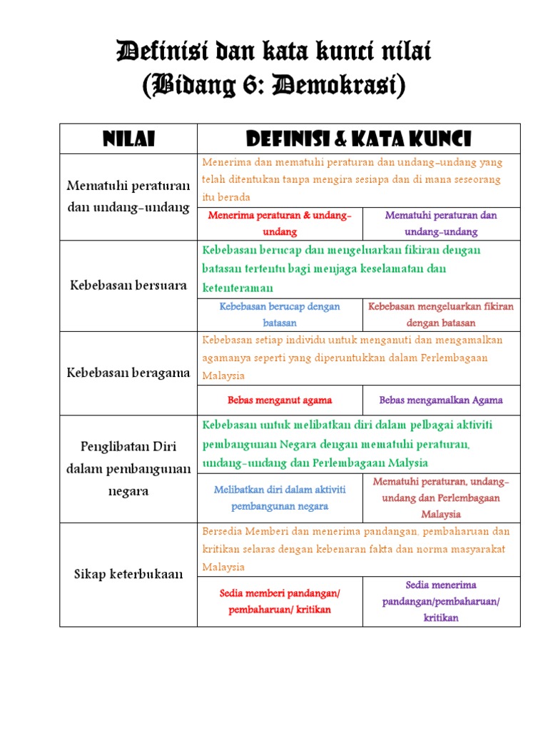 6 Nilai Berkaitan Dengan Demokrasi
