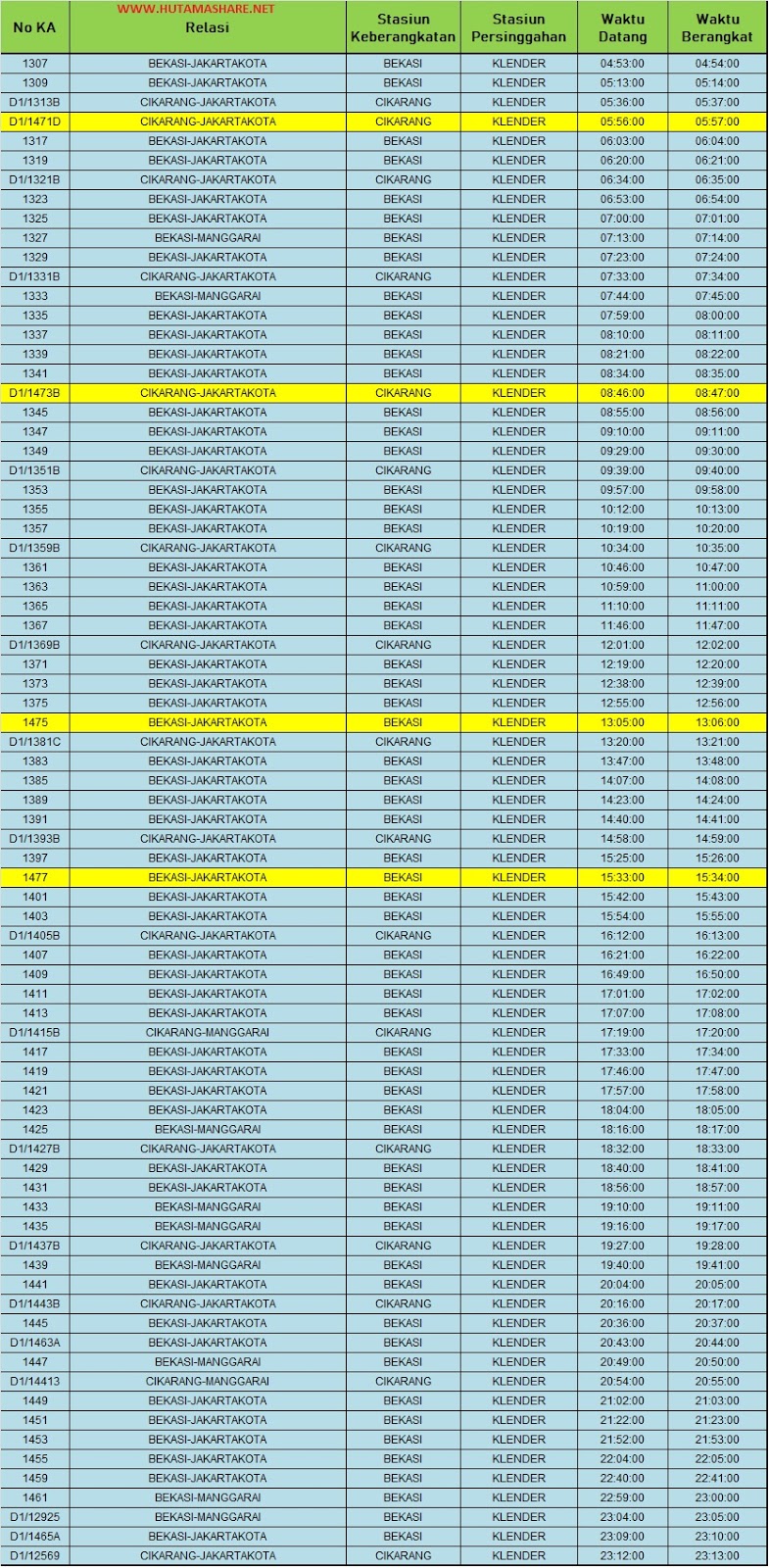 Jadwal Lengkap Kereta Api Krl Commuterline Stasiun Klender Terbaru 2019 Hutama Share