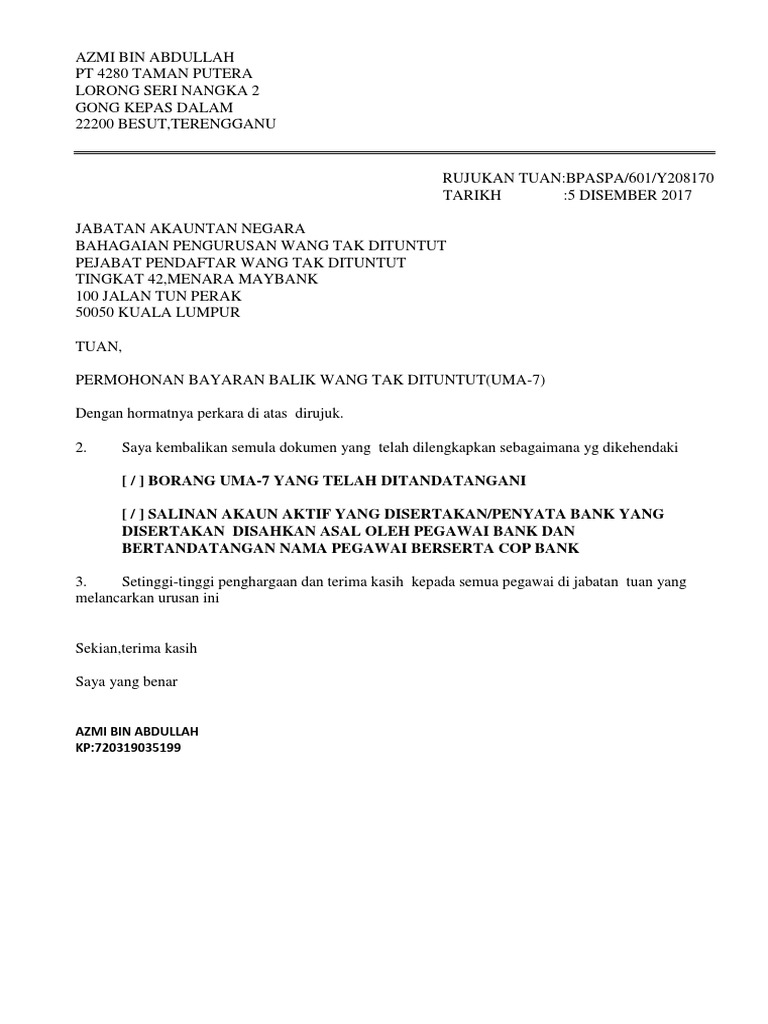 Panduan Menyediakan Daftar Wang Tak Dituntut B1 Tahun Uma 3 Nombor 4 Aksara Contoh Serahan