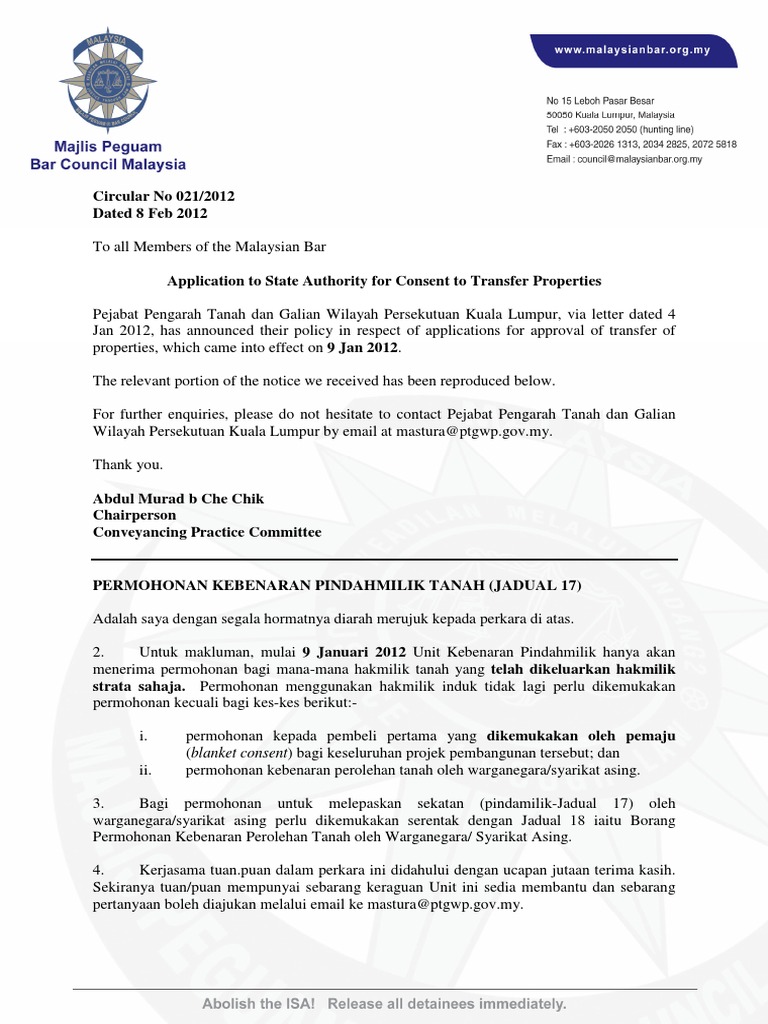 Pejabat pengarah tanah dan galian wilayah persekutuan aras g 6 rumah persekutuan jalan sultan hishamudin 50678 kuala lumpur.