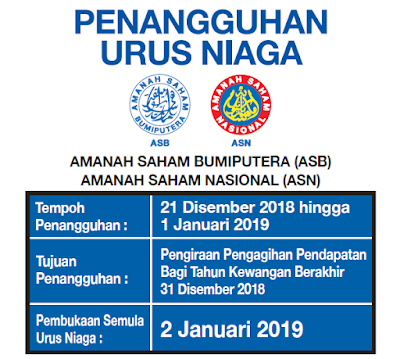 Kewangan Graduan On Twitter Penangguhan Urus Niaga Asb Asn 21 Disember 2018 Hingga 1 Januari 2019