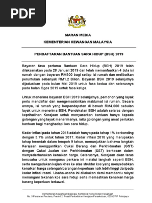 Siaran Media Kementerian Kewangan Malaysia Pendaftaran Bantuan Sara Hidup Bsh 2019