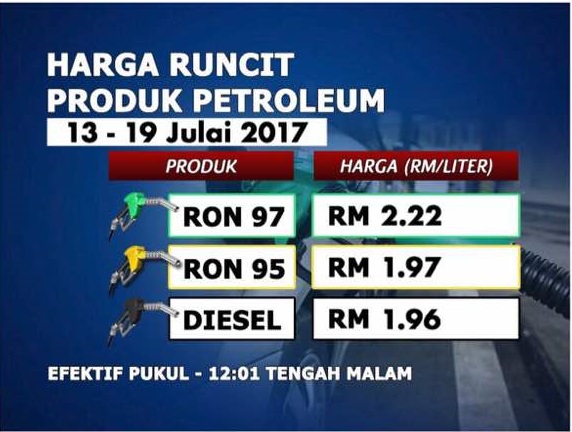 Harga Minyak Malaysia Petrol Price Ron 95 Rm1 97 97 Rm2 22 Diesel Rm1 96 13 19 July 2017