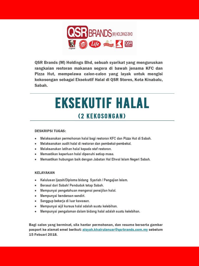 Oh Kerja Kosong On Twitter Qsr Brands M Holdings Sdn Bhd