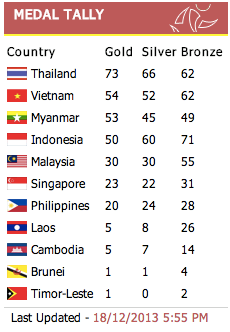 Sea Games 2013 Medals Ranking And Tally As Of December 18 Mykiru Isyusero