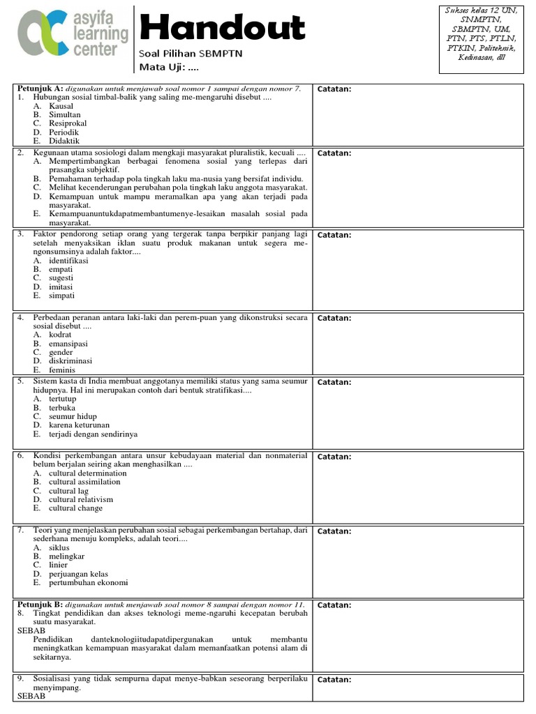 Sbmptn Sosiologi 2