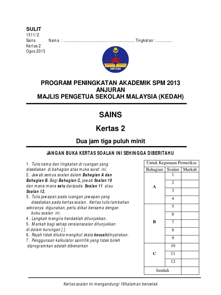 Koleksi Soalan Peperiksaan Sebenar Spm 2013 Idea Terkini