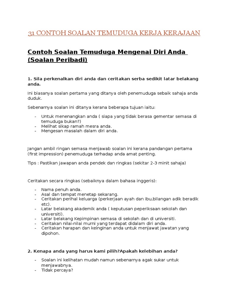 31 Contoh Soalan Temuduga Kerja Kerajaan
